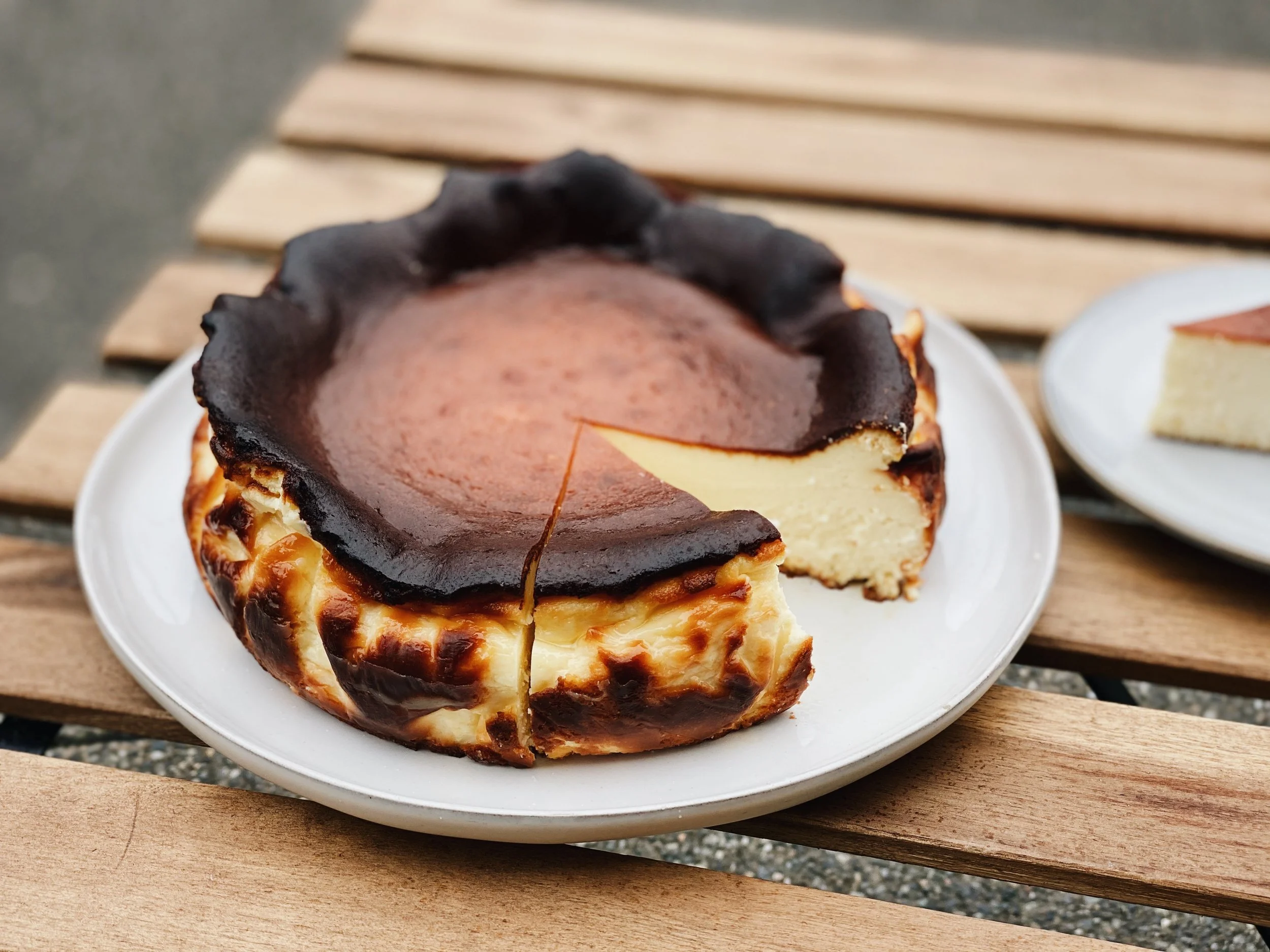 Our whole Basque cheesecakes (GF) are 8” round and serve 8-10. No minimum order. Pick up at our shop between Thursday and Sunday, 10AM-12:30PM.